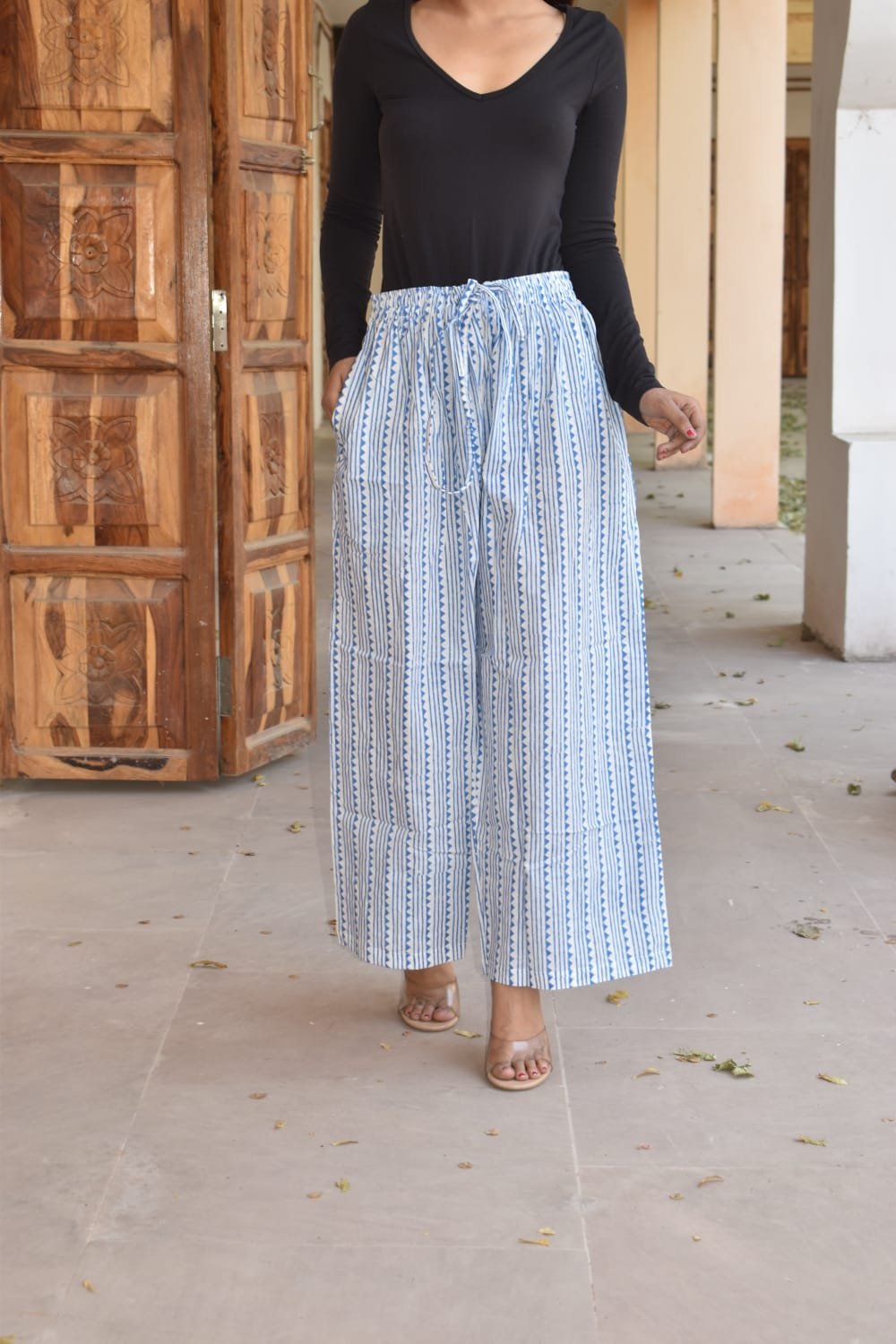 The flowy silhouette, airy cotton weave, and free-size fit with adjustable waist make these palazzos an ideal choice for all body types. Designed with functional side pockets, they’re as practical as they are graceful. Available in a variety of rich earthy and pastel tones, these palazzos pair beautifully with kurtas, tunics, shirts, or even crop tops – adding a touch of rustic artistry to your modern wardrobe.