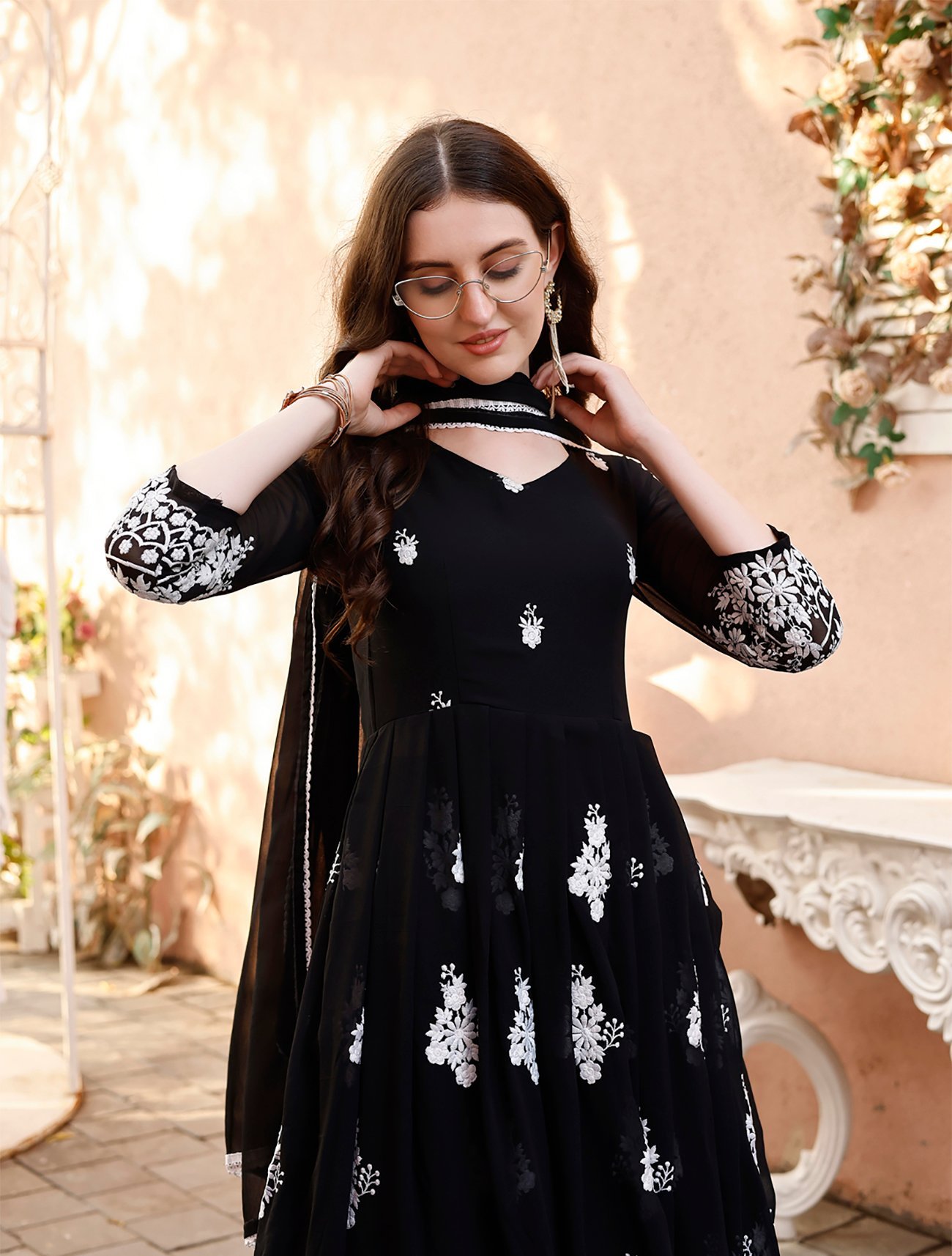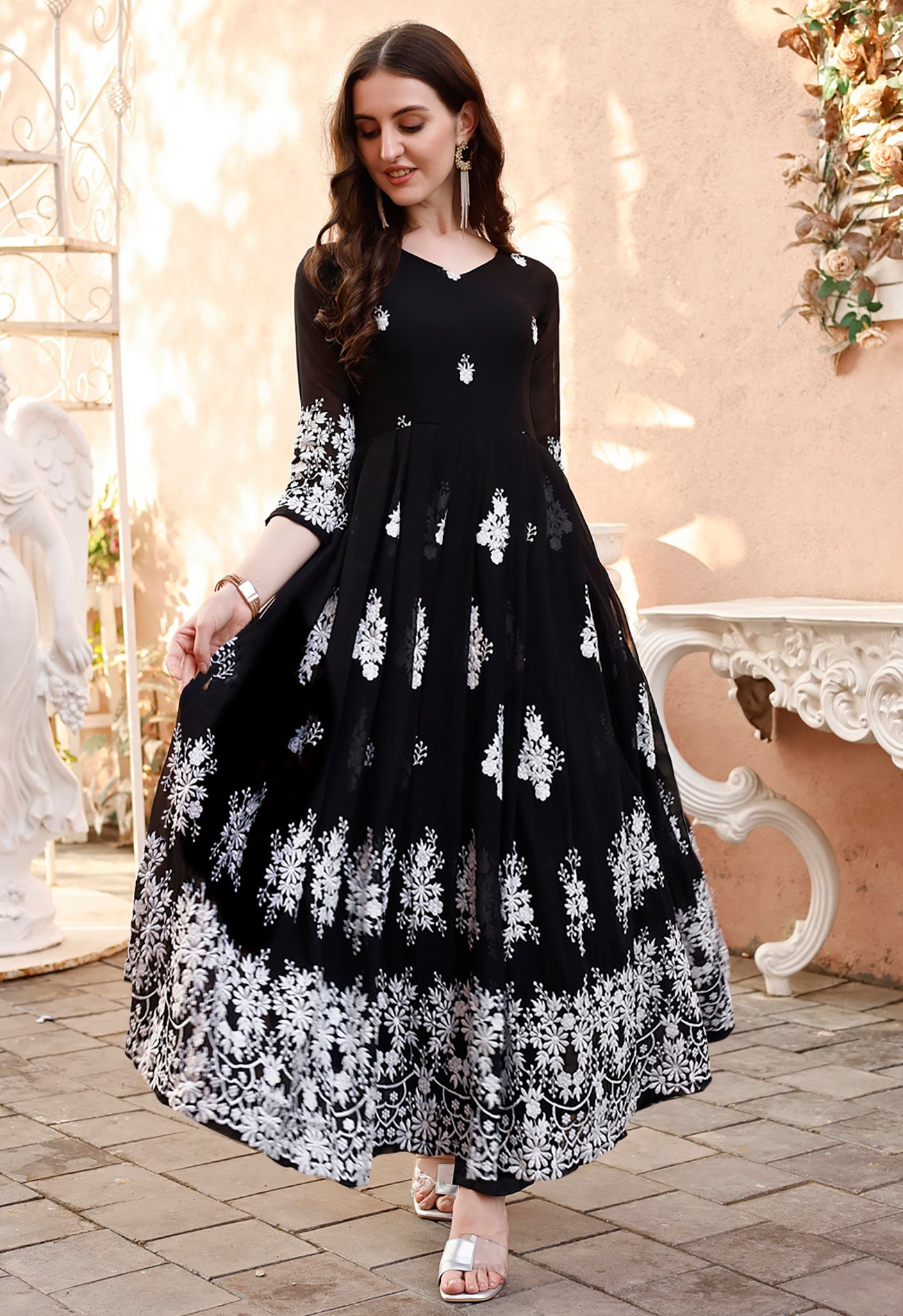 Discover timeless elegance with this stunning black embroidered Anarkali gown, a perfect ensemble for your next grand occasion.