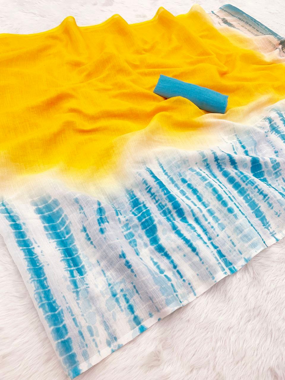 Presenting a beautiful RANGTITLI designer saree made from pure plain linen cotton, offering a soft, breathable, and premium feel. This saree is enhanced with Ultra HD ink digital printing and elegant wax finishing, giving it a classy and rich appearance. The look is completed with handmade zalar work, adding a touch of traditional charm. Comes with a soft plain linen blouse fabric, making it a perfect choice for daily wear, festive occasions, and special gatherings at an unbeatable price.